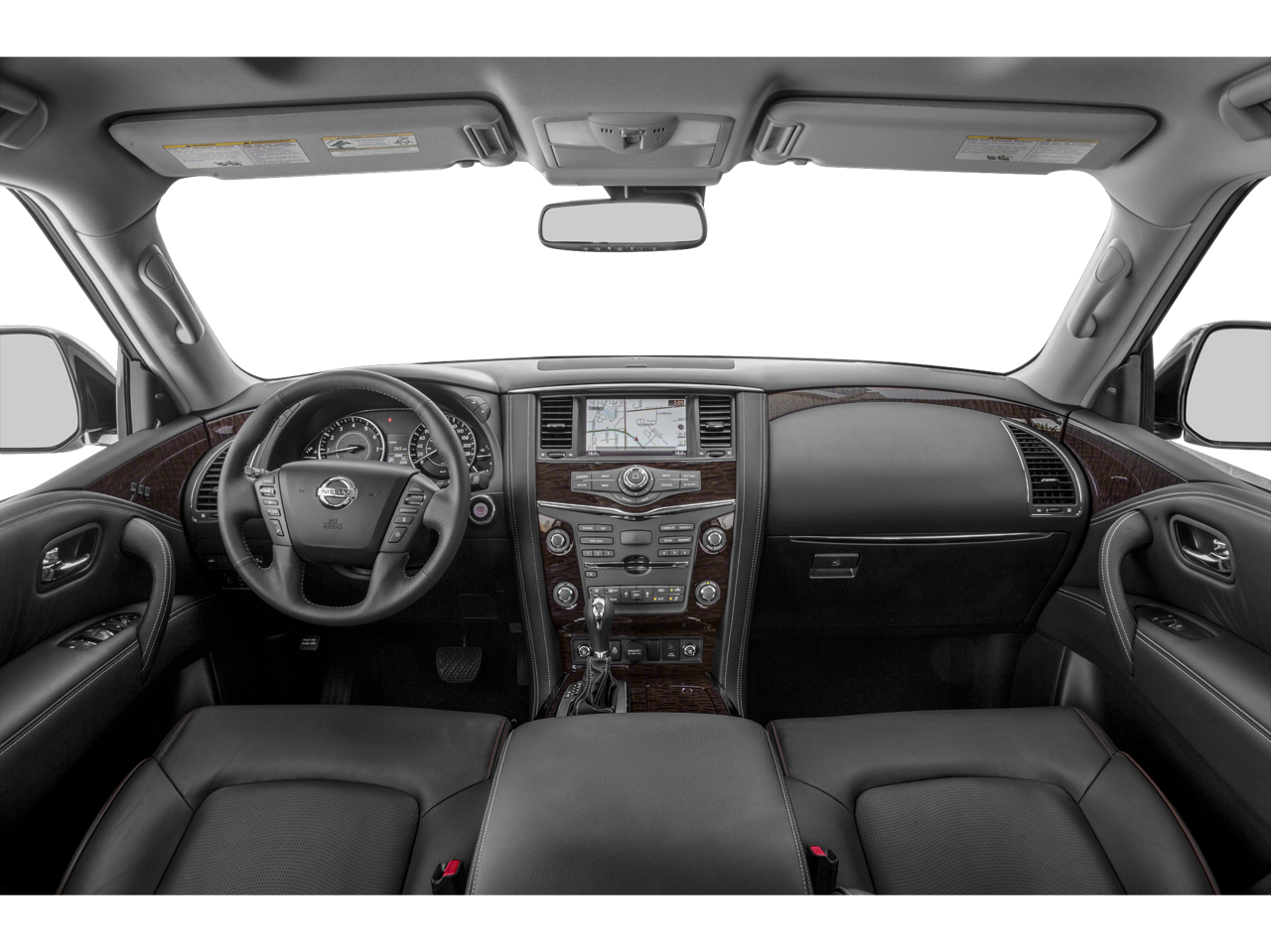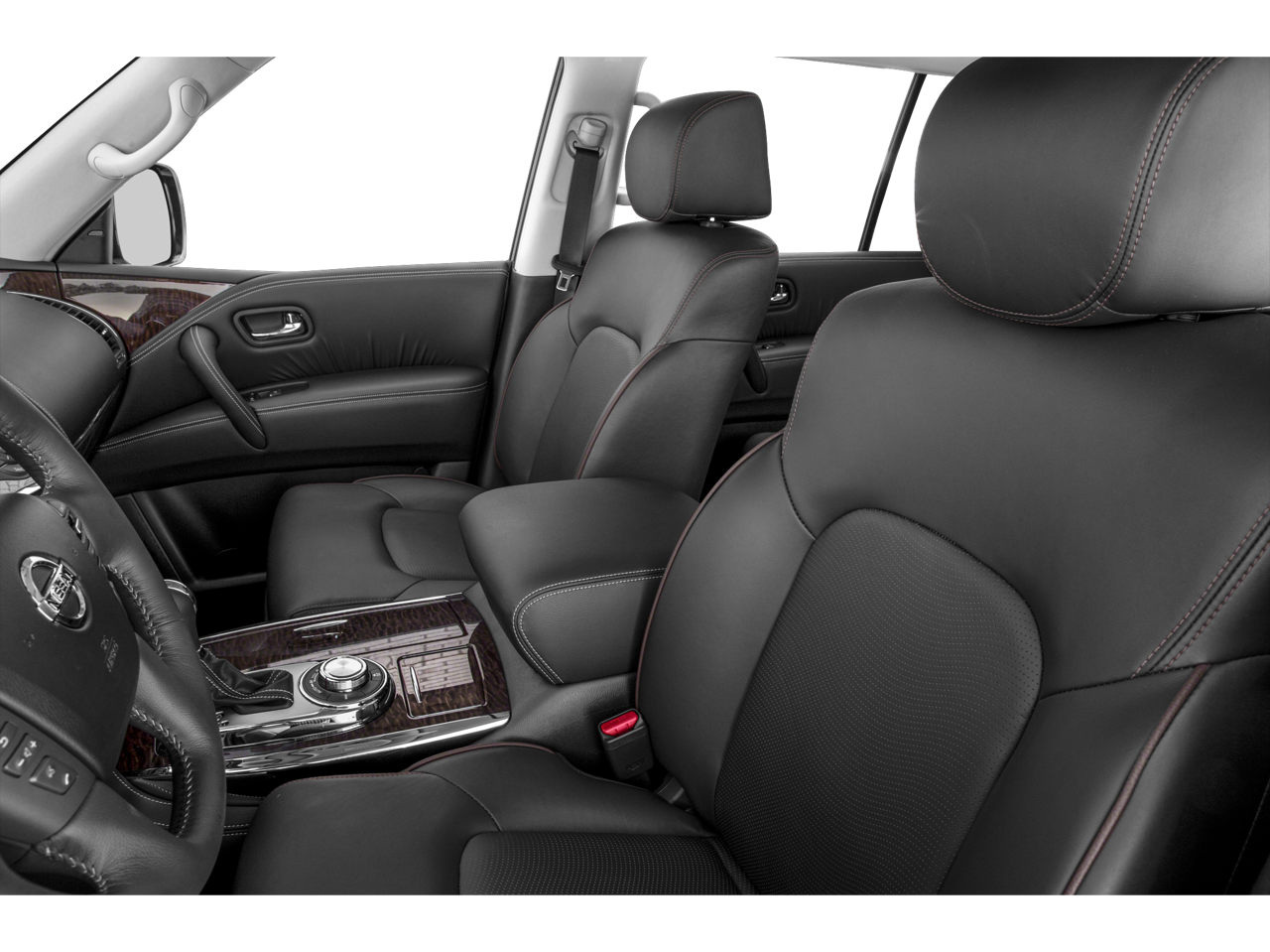 Captain's Chairs Package (2nd Row Captain's Chairs and 2nd Row Center Console w/ Padded Armrest), Cargo Package, Carpeted Floor Mats w/ Captain Seat Package, Platinum Reserve Package (Two-Tone Semi-Aniline Leather Seat Trim and Wheels: 20 Dark Chrome Alloy), 13 Speakers, 2.937 Axle Ratio, 3rd row seats: split-bench, 4-Wheel Disc Brakes, A/V remote, ABS brakes, Air Conditioning, Alloy wheels, AM/FM radio: SiriusXM, Anti-whiplash front head restraints, Auto tilt-away steering wheel, Auto-dimming door mirrors, Auto-dimming Rear-View mirror, Auto-leveling suspension, Automatic temperature control, Brake assist, Bumpers: body-color, CD player, Cross Bars, Delay-off headlights, Driver door bin, Driver vanity mirror, Dual front impact airbags, Dual front side impact airbags, Electronic Stability Control, Emergency communication system: NissanConnect Services, Four wheel independent suspension, Front anti-roll bar, Front Bucket Seats, Front Center Armrest, Front dual zone A/C, Front fog lights, Front reading lights, Fully automatic headlights, Garage door transmitter: HomeLink, Headphones, Heated & Cooled Front Bucket Seats w/Driver Memory, Heated door mirrors, Heated front seats, Heated rear seats, Heated steering wheel, Illuminated entry, Illuminated Kick Plates, Leather Shift Knob, Leather-Appointed Seat Trim, Low tire pressure warning, Memory seat, Navigation System, Occupant sensing airbag, Outside temperature display, Overhead airbag, Overhead console, Panic alarm, Passenger door bin, Passenger vanity mirror, Power door mirrors, Power driver seat, Power Liftgate, Power moonroof, Power passenger seat, Power steering, Power windows, Radio data system, Radio: AM/FM/SXM/CD/MP3/HD, Rain sensing wipers, Rear air conditioning, Rear anti-roll bar, Rear reading lights, Rear seat center armrest, Rear window defroster, Rear window wiper, Reclining 3rd row seat, Remote keyless entry, Roof rack: rails only, Security system, Special Paint - Pearl White, Speed control, Speed-sensing steering, Speed-Sensitive Wipers, Split folding rear seat, Spoiler, Steering wheel memory, Steering wheel mounted audio controls, Tachometer, Telescoping steering wheel, Tilt steering wheel, Traction control, Trip computer, Turn signal indicator mirrors, Variably intermittent wipers, Ventilated front seats, Voltmeter, Welcome Lighting, and Wheels: 20 Machine-Faced Chrome w/Tinted CC.