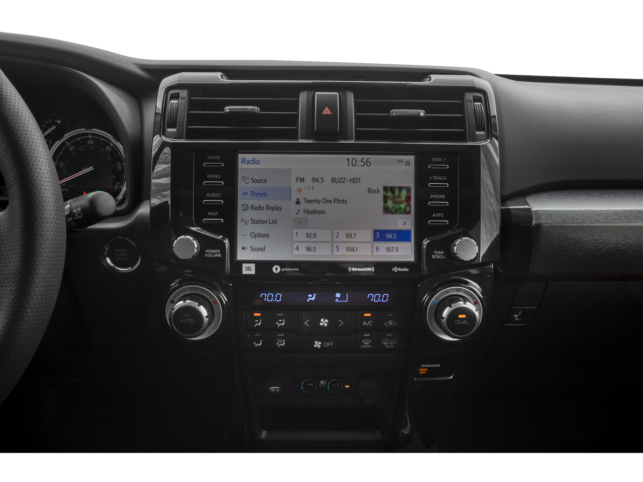 - Radio: Premium JBL Audio w/Navigation -inc: JBL w/Clari-Fi, 15 speakers including subwoofer and amplifier, 8.0" touchscreen display, AM/FM/HD Radio, Android Auto, Apple CarPlay and Amazon Alexa compatible, USB media port, 4 USB charge ports, Dynamic Navigation w/up to a 3-year trial, Dynamic POI Search, hands-free phone capability, dynamic voice recognition and music streaming via Bluetooth® wireless technology, SiriusXM w/3-month All Access trial, Connected Services - Safety Connect w/1-year trial, Service Connect w/10-year trial, Remote Connect w/1-year trial, Wi-Fi Connect w/up to 2 GB within 3-month trial, Destination Assist w/1-year trial See toyota.com/audio-multimedia for details.