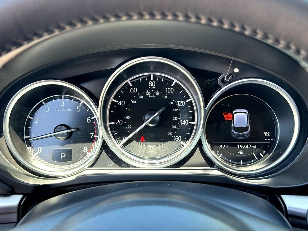 4-Wheel Disc Brakes, 4.624 Axle Ratio, ABS brakes, Air Conditioning, Alloy wheels, AM/FM radio, AppLink/Apple CarPlay and Android Auto, Auto High-beam Headlights, Auto-dimming Rear-View mirror, Automatic temperature control, Brake assist, Bumpers: body-color, Delay-off headlights, Driver door bin, Driver vanity mirror, Dual front impact airbags, Dual front side impact airbags, E911 Automatic Emergency Notification, Electronic Stability Control, Emergency communication system: MAZDA CONNECT, Exterior Parking Camera Rear, Four wheel independent suspension, Front anti-roll bar, Front Bucket Seats, Front Center Armrest w/Storage, Front dual zone A/C, Front reading lights, Fully automatic headlights, Garage door transmitter: HomeLink, Heated Front Bucket Seats, Heated front seats, Illuminated entry, Infotainment System Voice Command, Leather Seat Trim, Leather Shift Knob, Low tire pressure warning, Memory seat, Multifunction Commander Control, Occupant sensing airbag, Outside temperature display, Overhead airbag, Overhead console, Pandora, Panic alarm, Passenger door bin, Passenger vanity mirror, Power door mirrors, Power driver seat, Power Liftgate, Power moonroof, Power passenger seat, Power steering, Power windows, Radio Broadcast Data System Program Information, Radio data system, Radio: AM/FM/HD Audio System, Rain sensing wipers, Rear anti-roll bar, Rear reading lights, Rear seat center armrest, Rear window defroster, Rear window wiper, Remote keyless entry, SMS Text Msg Audio Delivery & Reply, Speed control, Speed-sensing steering, Split folding rear seat, Spoiler, Steering wheel mounted audio controls, Tachometer, Telescoping steering wheel, Tilt steering wheel, Traction control, Trip computer, Turn signal indicator mirrors, and Variably intermittent wipers.
