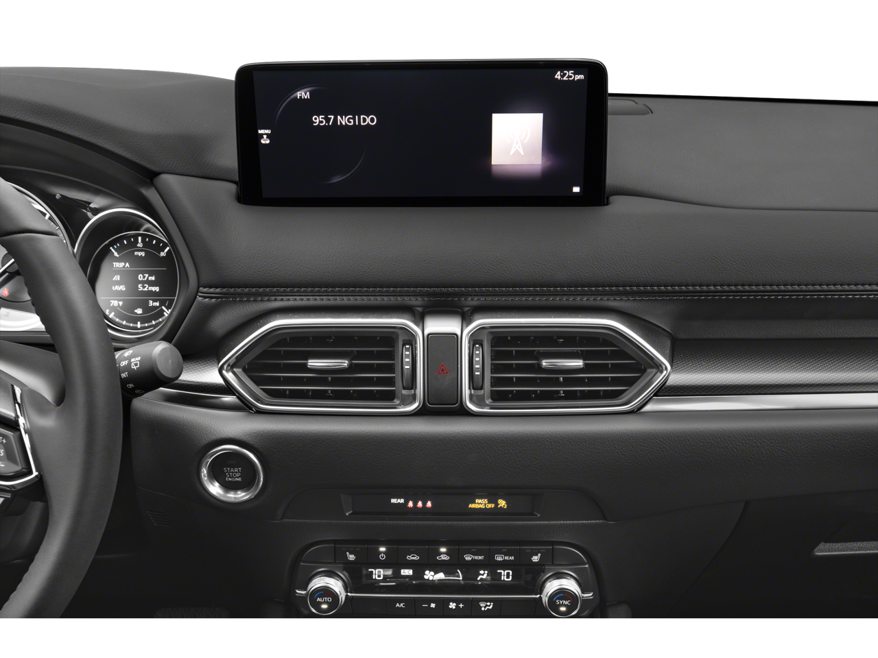 10 Speakers, 4-Wheel Disc Brakes, 4.624 Axle Ratio, ABS brakes, Air Conditioning, Alloy wheels, AM/FM radio, AppLink/Apple CarPlay and Android Auto, Auto High-beam Headlights, Auto-dimming Rear-View mirror, Automatic temperature control, Brake assist, Bumpers: body-color, Delay-off headlights, Driver door bin, Driver vanity mirror, Dual front impact airbags, Dual front side impact airbags, E911 Automatic Emergency Notification, Electronic Stability Control, Emergency communication system: MAZDA CONNECT, Exterior Parking Camera Rear, Four wheel independent suspension, Front anti-roll bar, Front Bucket Seats, Front Center Armrest w/Storage, Front dual zone A/C, Front reading lights, Fully automatic headlights, Garage door transmitter: HomeLink, Heated Front Bucket Seats, Heated front seats, Illuminated entry, Infotainment System Voice Command, Leather Seat Trim, Leather Shift Knob, Leather steering wheel, Low tire pressure warning, Memory seat, Multifunction Commander Control, Occupant sensing airbag, Outside temperature display, Overhead airbag, Overhead console, Pandora, Panic alarm, Passenger door bin, Passenger vanity mirror, Power door mirrors, Power driver seat, Power Liftgate, Power moonroof, Power passenger seat, Power steering, Power windows, Radio Broadcast Data System Program Information, Radio data system, Radio: AM/FM/HD Audio System, Rain sensing wipers, Rear anti-roll bar, Rear reading lights, Rear seat center armrest, Rear window defroster, Rear window wiper, Remote keyless entry, SMS Text Msg Audio Delivery & Reply, Speed control, Speed-sensing steering, Split folding rear seat, Spoiler, Steering wheel mounted audio controls, Tachometer, Telescoping steering wheel, Tilt steering wheel, Traction control, Trip computer, Turn signal indicator mirrors, Variably intermittent wipers, and Wheels: 19 x 7J Aluminum Alloy.