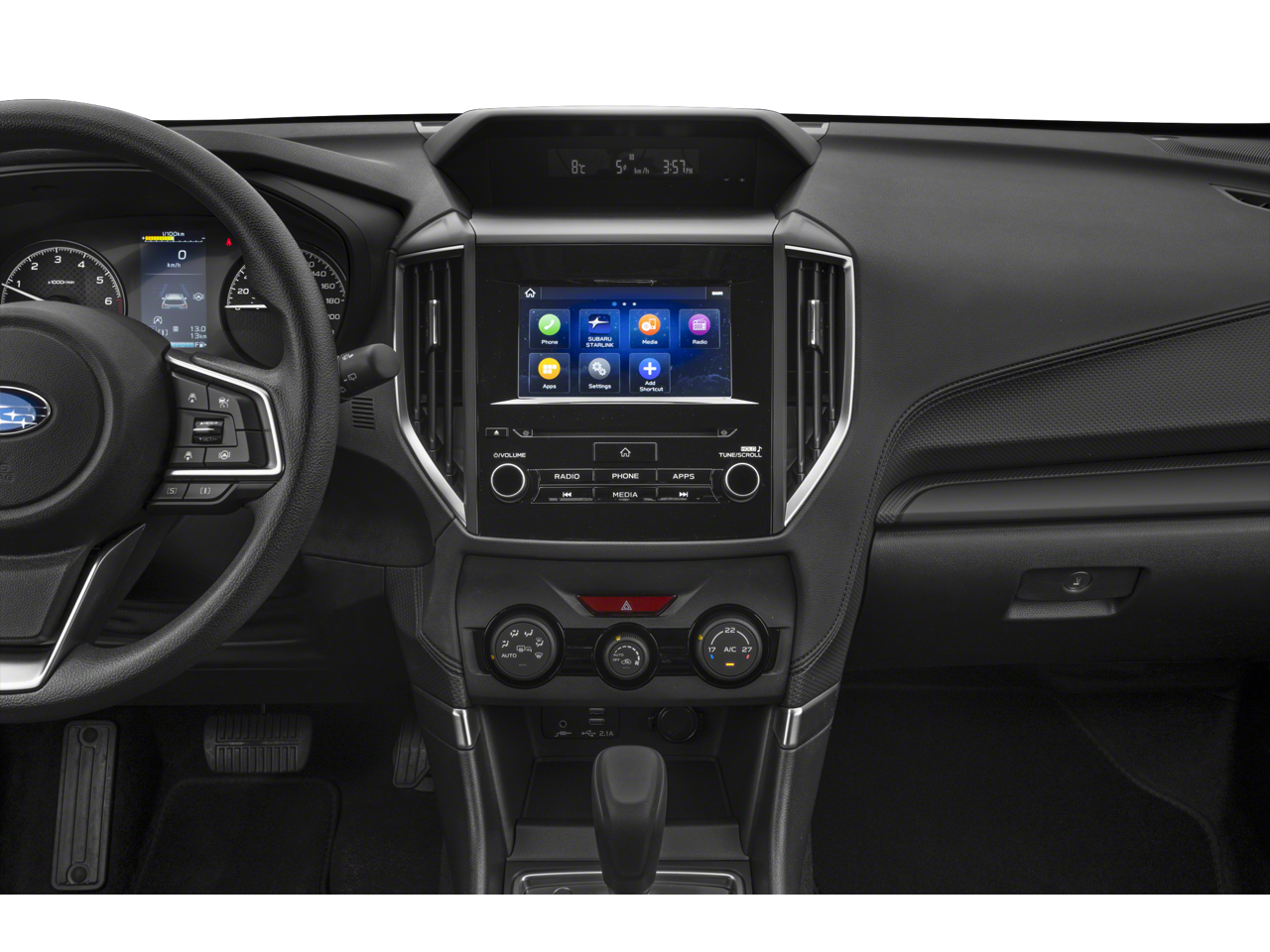 - Radio: Subaru STARLINK 6.5" Multimedia Plus System -inc: AM/FM stereo HD Radio, multi-touch gesture high resolution display screen, voice activated controls, Bluetooth® audio streaming, hands-free phone connectivity and hands-free SMS text messaging connectivity (refer to subaru.com for cell phone compatibility), iPod control capability, SiriusXM All Access radio and SiriusXM Travel Link (4 months free trial/subscription required after), smartphone integration for AHA, Android Auto, Apple CarPlay, Pandora and STARLINK cloud applications (refer to subaru.com for app availability), USB audio system update, steering wheel controls for audio and Bluetooth®, 6 speakers, 3.5mm auxiliary input jack and dual USB A input/charge ports