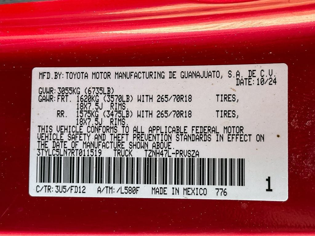 - Vehicle Name: Toyota Tacoma 4WD