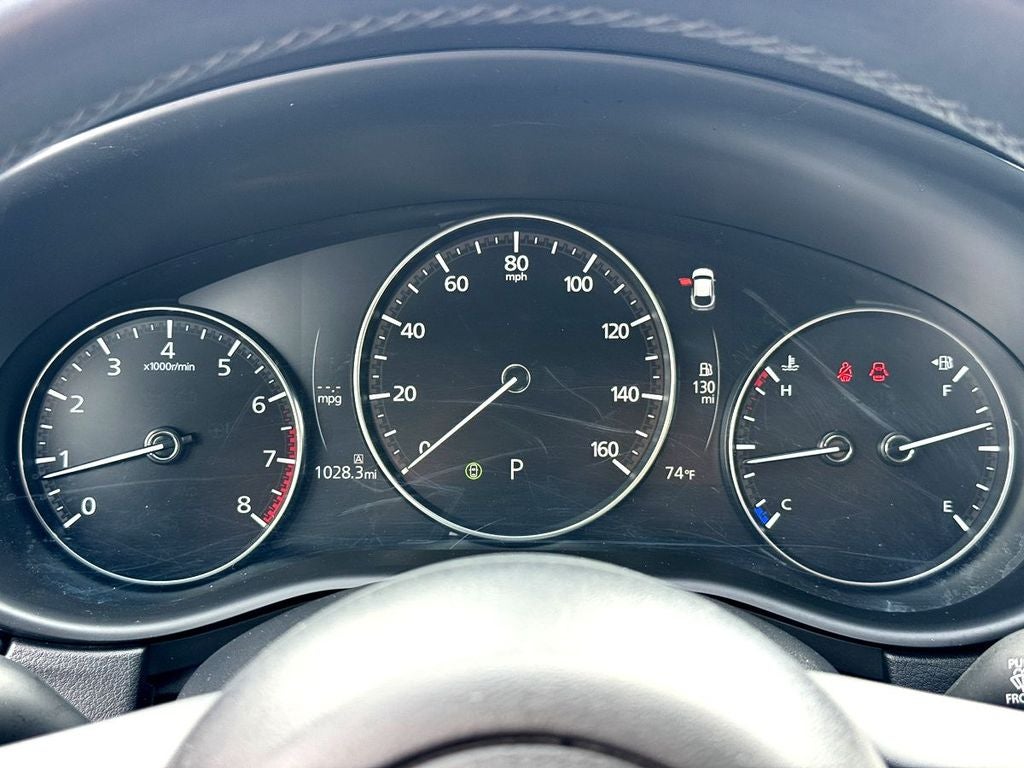 4-Wheel Disc Brakes, 8 Speakers, ABS brakes, Air Conditioning, Alloy wheels, AM/FM radio, AppLink/Apple CarPlay and Android Auto, Auto High-beam Headlights, Automatic temperature control, Brake assist, Bumpers: body-color, Compass, Delay-off headlights, Driver door bin, Driver vanity mirror, Dual front impact airbags, Dual front side impact airbags, Electronic Stability Control, Emergency communication system: Mazda Connected Services (3-year trial subscription included), Exterior Parking Camera Rear, Front anti-roll bar, Front Bucket Seats, Front Center Armrest, Front dual zone A/C, Front reading lights, Front wheel independent suspension, Fully automatic headlights, Heated door mirrors, Heated Front Bucket Seats, Heated front seats, Illuminated entry, Knee airbag, Leather Seat Trim, Leather Shift Knob, Leather steering wheel, Low tire pressure warning, MAZDA CONNECT Infotainment System, Memory seat, Occupant sensing airbag, Outside temperature display, Overhead airbag, Overhead console, Panic alarm, Passenger door bin, Passenger vanity mirror, Power door mirrors, Power driver seat, Power moonroof, Power steering, Power windows, Radio data system, Radio: AM/FM/HD Audio System, Rain sensing wipers, Rear seat center armrest, Rear side impact airbag, Rear window defroster, Rear window wiper, Remote keyless entry, Speed control, Speed-sensing steering, Split folding rear seat, Spoiler, Steering wheel mounted audio controls, Tachometer, Telescoping steering wheel, Tilt steering wheel, Traction control, Trip computer, Turn signal indicator mirrors, Variably intermittent wipers, and Wheels: 18 x 7J Aluminum Alloy.