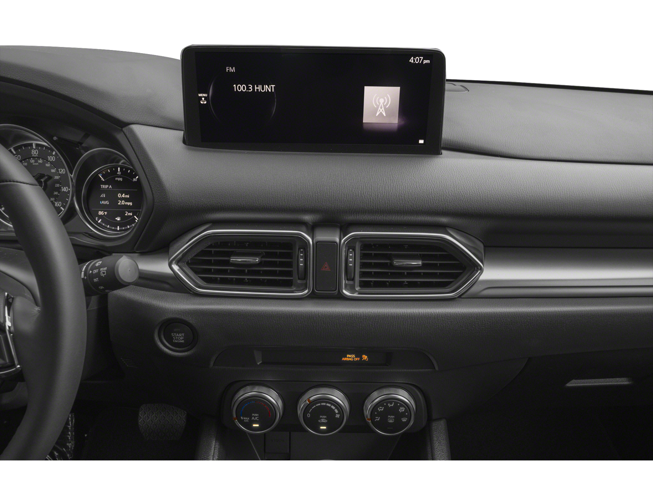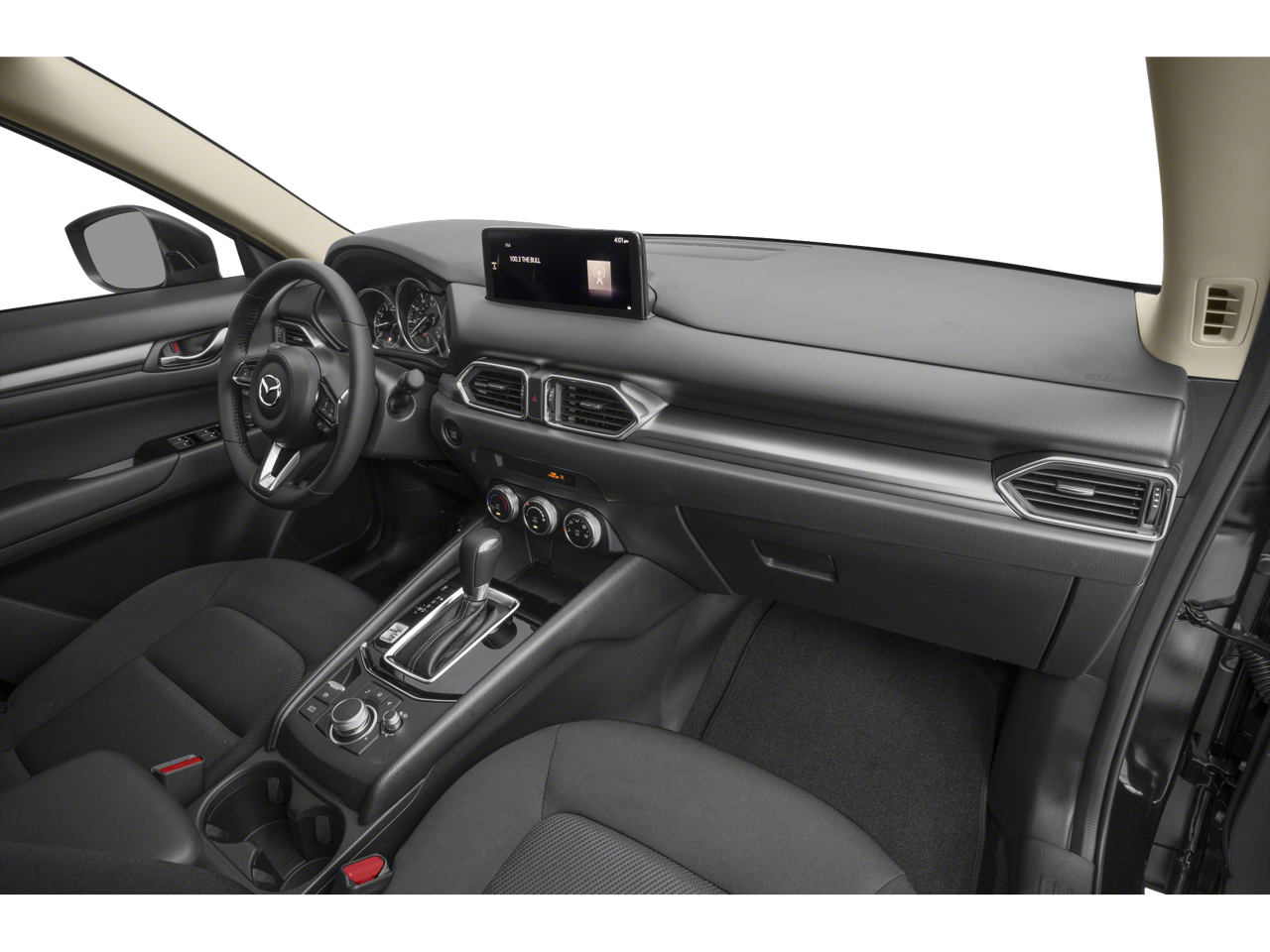 4 Speakers, 4-Wheel Disc Brakes, ABS brakes, Air Conditioning, All-Weather Floor Mats, Alloy wheels, AM/FM radio, AppLink/Apple CarPlay and Android Auto, Auto High-beam Headlights, Brake assist, Bumpers: body-color, Cloth Seat Trim, Delay-off headlights, Driver door bin, Driver vanity mirror, Dual front impact airbags, Dual front side impact airbags, E911 Automatic Emergency Notification, Electronic Stability Control, Emergency communication system: MAZDA CONNECT, Exterior Parking Camera Rear, First Aid Kit, Four wheel independent suspension, Front anti-roll bar, Front Bucket Seats, Front Center Armrest w/Storage, Front reading lights, Fully automatic headlights, Illuminated entry, Infotainment System Voice Command, Leather Shift Knob, Leather steering wheel, Low tire pressure warning, Multifunction Commander Control, Occupant sensing airbag, Outside temperature display, Overhead airbag, Overhead console, Pandora, Panic alarm, Passenger door bin, Passenger vanity mirror, Power door mirrors, Power steering, Power windows, Radio Broadcast Data System Program Information, Radio data system, Radio: AM/FM/HD Audio System, Rain sensing wipers, Rear anti-roll bar, Rear reading lights, Rear window defroster, Rear window wiper, Remote keyless entry, SMS Text Msg Audio Delivery & Reply, Speed control, Speed-sensing steering, Split folding rear seat, Spoiler, Steering wheel mounted audio controls, Tachometer, Telescoping steering wheel, Tilt steering wheel, Traction control, Trip computer, Turn signal indicator mirrors, Variably intermittent wipers, and Wheels: 17 x 7J Aluminum Alloy.